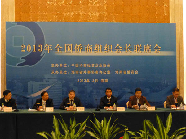 会议由庄荣文副会长主持,夏付东常务副秘书长首先向大会报告了明年的工作计划:中国侨商会将分别于2014年3月、6月召开中国经济形势分析会与换届大会,组织侨商参与周边国家建设座谈会,配合国侨办组织侨商会员到我国中西部地区考察投资,争取在上海自贸区筹建中国侨商银行,积极支持地方侨商会工作的开展等相关重要事宜;随后北京、上海、天津等协会进行了交流发言;任启亮副主任最后作了总结讲话。任启亮副主任在肯定各地侨商会工作的同时,明确提出要求:一、侨商会要进一步加强组织建设,实现健康持续发展。侨商会要解决规模不大、发展不平衡的问题。二、侨商会要提高侨商会筹办活动的层次与质量。三、要想方设法提升侨商会的会务组织水平。四、要处理好侨商会与侨办的关系,要解决好各自的定位问题。党的十八大明确提出社团组织要逐步脱离政府,要切实推动商会组织的变革与发展,各地侨商会要顺应国家的改革发展趋势,未雨绸缪,预设方案。侨办是联系服务侨胞与侨商的政府机关,对侨商会工作要进行宏观指导并给予大力支持,不包干代替,不干预侨商会的具体工作;侨商会是沟通联系侨商企业与政府的桥梁与纽带,有自己的运行特点与规律,必须按章办事。不论是侨办还是侨商会都离不开侨胞、侨商与侨资企业,否则就成了无源之水。沟通、联系并服务好侨商企业是我们共同的责任。 我会黄金城会长在发言中,汇报了南京市侨商会自2004年成立以来在省市侨办的关怀指导下,在前任会长的带领下,在全体侨商企业家的团结努力下所取得的各项成绩,在履行社会责任方面,南京侨商会积极引领会员企业服务国家、回报社会,数年间为社会公益事业捐赠超过一亿元。同时,黄会长也简要地回顾了今年11月29日南京市侨商会的换届情况,当天,除全体会员准时出席外,我们还邀请了军政两界多位在职与离任领导与会,国侨办有关领导、省市侨办主任、南京市分管副市长都亲自到场并作了重要讲话,为我们协会的下一步发展指明了方向;截止换届当天,新一届会员向侨商会累计捐资600多万元,其中黄金城会长本人首先捐资100万元;会议当场,黄会长还代表新一届侨商会向南京市侨办捐资20万元用于公益事业。换届后,南京侨商组织得以迅速发展壮大,会员现已从原来的100多家发展到600多家(包含了部分千人计划、省双创及321领军人才等);副会长以上会员企业发展近30家;企业家会员中省级政协常委与委员已扩大到十多位,显著提升了南京市侨商组织的政治地位与参政议政的能力;最后,黄会长还简略地介绍了南京市侨商会2014年的工作打算,并决心在中国侨商会与省市侨办的正确领导下,团结带领广大会员企业,同心同德,为南京市侨商协会的进一步发展而努力奋斗。