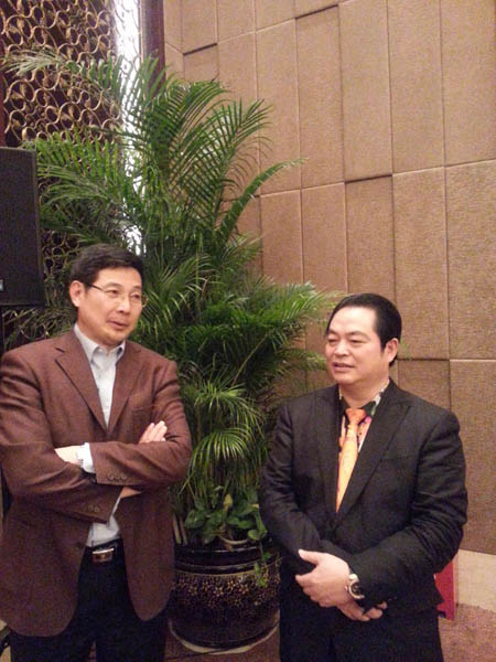 国务院侨办副主任兼中国侨商会常务副会长任启亮与黄金城会长合影
