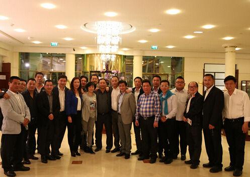 法华工商会会长郭智敏感谢杨小龙为在法华工商会回温州考察期间的热情接待,并请其介绍在国内二次创业的心得体会,以便让想回国创业的法华工商会会员“未雨绸缪”。
