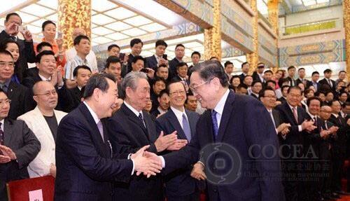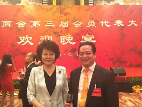 2014年6月27日国侨办主任裘援平在中国侨商第三次代表大会上与黄金城合影