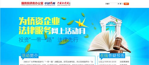 5月12日南京市侨商会分别参加了两场“为侨资企业法律服务网上活动月”的企业网上咨询活动。 此次咨询是国侨办为了配合国家“一带一路”的发展战略,扫除侨资企业参与其中的法律盲区,而为侨商们开展的法律先行活动。活动得到了协会成员企业的积极响应。作为代表,江苏信达置业有限公司、金轮天地控股有限公司站在企业发展的角度提出了个自的问题,涉及到侨资企业的境外投资、税制改革以及企业人力资源等方面,极具代表性。两家成员企业在网上热烈的交互式咨询中得到了专业律师满意的答复。在线下结束后,他们都表达了希望多多参加这种为企业答疑活动的愿望。