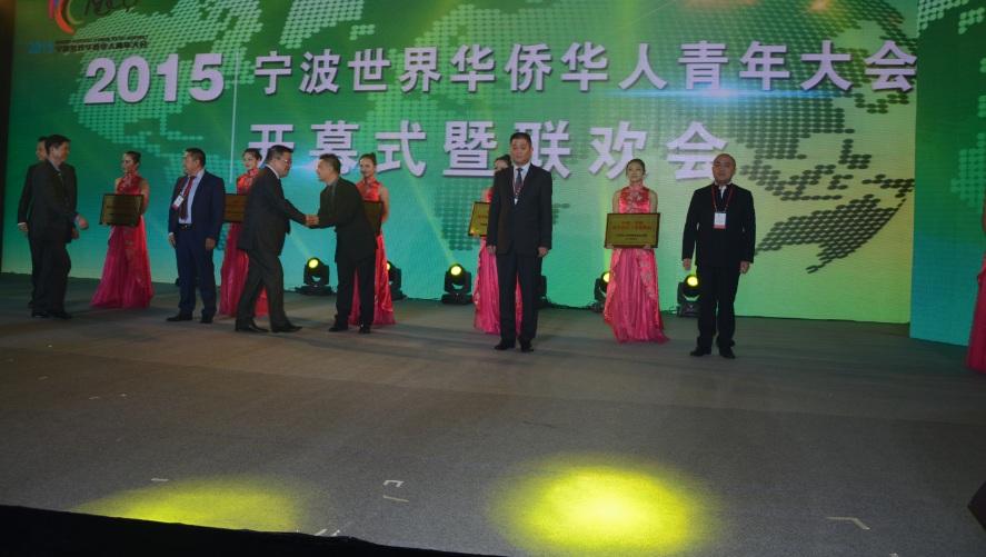 2015第二届宁波世界华侨华人青年大会6月7日在浙江宁波开幕。来自43个国家和地区的近270名海外华侨华人杰出青年会聚一堂。此次大会以“相聚美丽宁波•共创美好生活”为主题,围绕国家“一带一路”战略和宁波“港口经济圈”建设,探讨了海外华侨华人如何融入国家发展战略,搭建华侨华人青年创业平台,共助华侨创业发展,共圆中国复兴之梦。 南京市侨商会应邀作为友好商会,派出了由庄克服执行会长为团长,市侨商会部分成员、市海协会邀请海外嘉宾等20人,组成南京市侨商代表团参加了此次盛会。在隆重的大会开幕式上,我团海外嘉宾—菲律宾菲华联谊会的蔡明丰会长作为代表,上台领取了“中国-宁波海外侨务工作联络站”的站牌。在当天举行的侨界青年羽毛球赛上,我团来自澳洲的刘金羽、刘杨;帕劳的冷瑛、田行;以及来自意大利的单锦铭积极报名参与。在发挥了良好竞技水平的同时以赛会友,互勉共竞,在热烈的比赛气氛中展现了浓浓的中华血脉情。