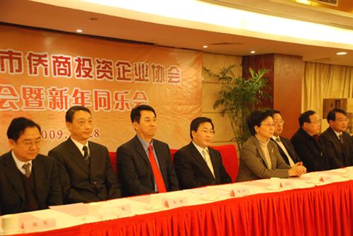 市侨商会会长、侨鸿集团董事长傅伟先生向来宾介绍了侨商会在2009年协助会员企业应对金融危机、开拓前进的工作情况,并计划在2010年进一步有所作为,同时呼吁海外华侨华人一起来支持南京申办2014年青奥会,向全世界展示南京的城市形象和精神。