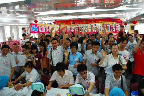 6月15日,南京市侨商会牵头发起了一场大型“献血传递爱心”公益献血活动。近两百位献血志愿者,分别来自十多家侨商会会员企业单位,于15日上午集中赴南京市红十字血液中心进行爱心献血。志愿献血者的主力军主要来自:侨鸿国际集团、智达康无线通信科技、王氏食品、八重樱文化体育交流信息有限公司、雅居乐房产开发等十多家侨资企业。 此次公益献血是侨商会自成立以来首次举办的,规模较大的团体性社会公益活动。自发起倡议起,每天的报名人数不断刷新,不到一周时间,献血志愿者已达到200人。本次活动举办时间适逢第九个世界献血者日,因此侨商会制定的宣传标语:“献血传递爱心”,充分结合了世卫组织所宣扬的“每一个无偿献血者都是英雄”主题口号,旨在发扬中华民族乐于助人、救死扶伤的优良美德。 为缓解我国临床用血持续短缺的现象,6月初,南京市侨商会会长联席会议一致通过,向会员企业发起爱心献血的倡议:义不容辞的履行社会义务,勇敢的承担社会责任,献出一片热忱,用热血传递爱心,共建充满“博爱与奉献”精神的美好家园!本次活动的倡议,主要向侨商会约二十家副会长级成员单位及常务理事级成单位发起,赢得了近七成企业的积极响应,充分体现了侨商会会员企业的号召力和凝聚力。为确保此次公益献血活动圆满顺利举行,侨商会秘书处做了充分的前期工作:实地考察血液中心、了解采血的全过程、与血液中心的工作人员商讨单独开设答疑点,接受志愿者对于献血的疑问…… 力求为每一个献血的志愿者提供安全、可靠、舒适的采血环境。 活动当日,来自各家企业的献血志愿者一早汇集于市红十字血液中心,他们身着统一的服装,领队手举企业标牌,每人胸前佩戴着宣传标语:“献血传递爱心”,井然有序的进行体检和采血。献血志愿者们来自不同的行业和不同的岗位,他们当中有普通工人、职员和技术人员,也有高层管理人员,年龄分布从桃李年华直至知命之年,为了参加爱心献血,他们放下手中的工作,怀着诚挚的心来到血液中心。在众多献血志愿者之中,年龄最大的是一位52岁的台商—南京侨鸿皇冠假日酒店总经理郑礼宁,郑总自18岁起就坚持每年献血,至今已有34年,对他而言献血早已成为及其平常的事情。大部分的志愿者都是70、80后的年轻人,他们当中有的已经累计献血5-6次,有的则是第一次献血,不同的背景让他们聚集到一起,为一个共同的目标和信念而努力:“献出无限的血液,拯救有限的生命”!